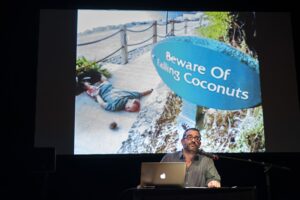 Doug Fishbone is an American artist living and working in London. He earned an BA from Amherst College in the US in 1991, and MA in Fine Art at Goldsmiths College, London in 2003. Selected solo exhibitions include Tate Britain, London (2010-11), Rokeby, London (2010-11, and 2009), Gimpel Fils, London (2006) and 30,000 Bananas in Trafalgar Square (2004). Selected group exhibitions include Rude Britannia: British Comic Art, Tate Britain (2010), Busan Biennale, Busan, South Korea (2008); Laughing in a Foreign Language, Hayward Gallery (2008), London; British Art Show 6, Newcastle, Bristol, Nottingham and Manchester (2006). He performs regularly at both international and UK venues, including appearances at London’s ICA and Southbank Centre. His film and performance work is heavily influenced by the rhythms of stand-up comedy – he was described by one critic as a “stand-up conceptual artist” – and examines some of the more problematic aspects of contemporary life in an amusing and disarming way. He is particularly interested in examining questions of relativity and perception, and how audience and context influence interpretation. His 2010 film project Elmina, made in collaboration with Revele Films in Ghana, had its world premiere at Tate Britain in 2010 and was nominated for an African Movie Academy Award in Nigeria in 2011. Elmina was recently voted no. 35 on Artinfo’s survey of the 100 most iconic artworks of the past 5 years. He is currently at work on a follow-up, to be filmed later this year in Ghana. Fishbone’s practice is wide-ranging, using many different popular forms in unexpected ways. He curated Doug Fishbone’s Leisure Land Golf, a bespoke art/crazy golf course featuring some of the UK’s leading artists, at the 56th Venice Biennale in 2015, and in the same year, he collaborated with the Dulwich Picture Gallery in London, one of the nation’s most prestigious Old Masters collections, on a solo project involving switching one of the Gallery’s masterpieces with a replica made in China. Other recent projects include a series of guided bus tours in Aberdeen as part of the Look Again Festival in 2016, and a series of riverboat performances on the River Thames called Doug Fishbone’s “Booze Cruise”, originally commissioned as part of the Mayor of London’s Thames Festival in 2013 and 2014. His project Artificial Intelligence (2018) was commissioned by werkleitz within the framework of EMAP / EMARE and Co-funded by the Creative Europe Program of the European Union, and he took part in the exhibition “Jews, Money, Myth” at the Jewish Museum, London in 2019. He will be presenting a major new commission at the Crawford Art Gallery in Cork Ireland in the spring of 2020. He lives in London with his wife, the artist Karen Russo, their daughter Tallulah and son Harrison.