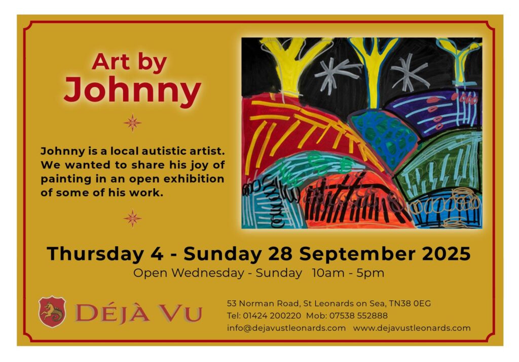 Deja Vu is proud to present ‘Art by Johnny’ at this year’s Coastal Currents. This joyful exhibition features work by Johnny, a local autistic artist, and celebrates his love of painting with an open, welcoming showcase of creativity and expression.