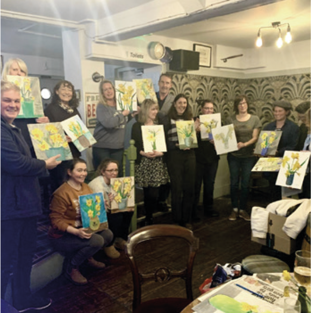 Two years ago, artist Dawn Borthwick created a Paint and Wellbeing Club at The Plough Inn for friends and locals, now a monthly group event held in many venues. We are showcasing the fantastic artwork produced during this time.